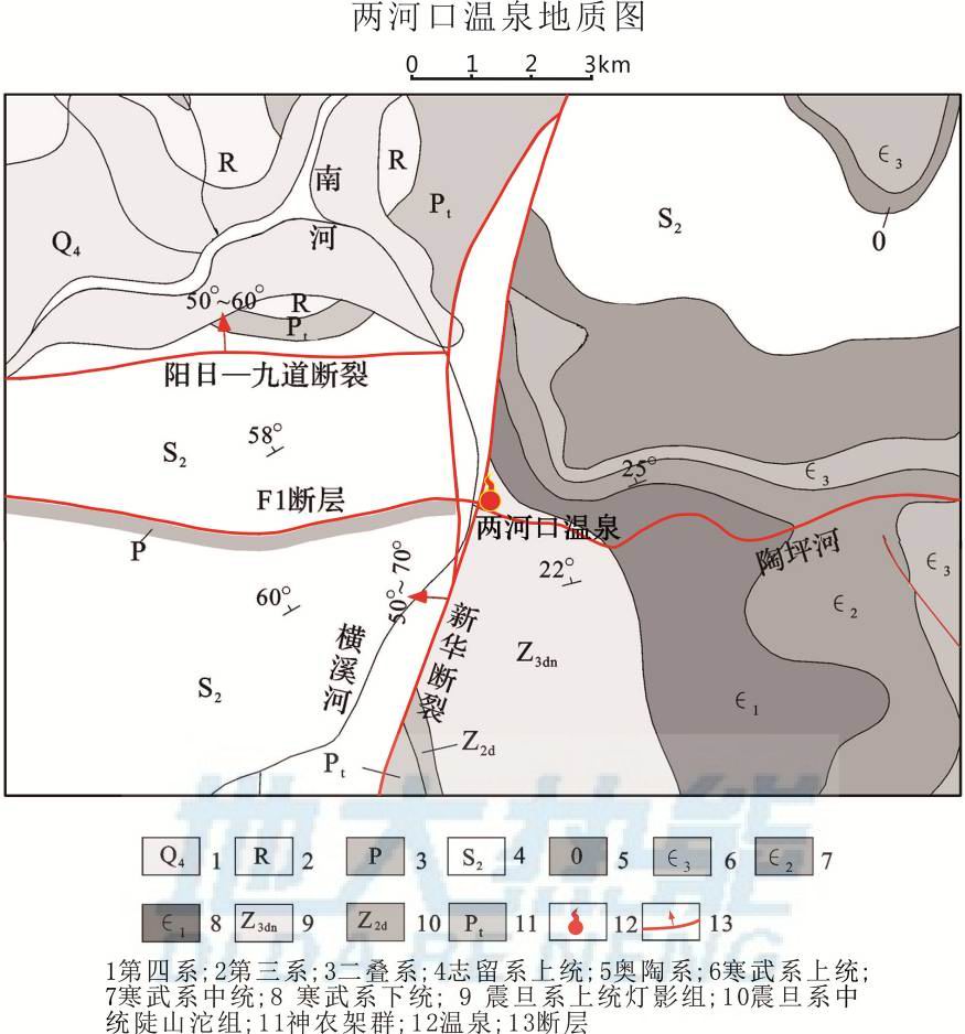 圖3 峨眉山市兩河口溫泉構(gòu)造示意圖